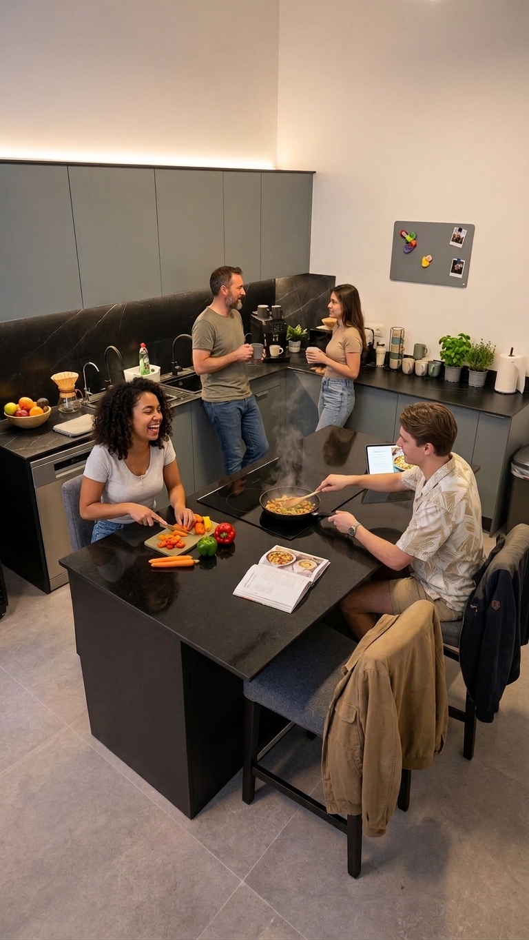 Casa Vera Coliving offers a total of 11 rooms across 4 floors, with capacity for 20 guests. The house features 5 bathrooms, two fully equipped kitchens, two living rooms, and a spacious rooftop terrace with BBQ area — perfect for community events and relaxing after work.