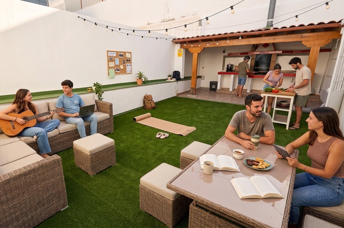 Casa Vera Coliving is the perfect place to accommodate your team for a company retreat. Whether you need a few weeks or months, our 11-room space with capacity for 20 people offers everything your team needs: high-speed WiFi, dedicated workspaces, two fully equipped kitchens, two living rooms, and a rooftop terrace with BBQ for team-building activities — all in the cultural heart of Las Palmas.
